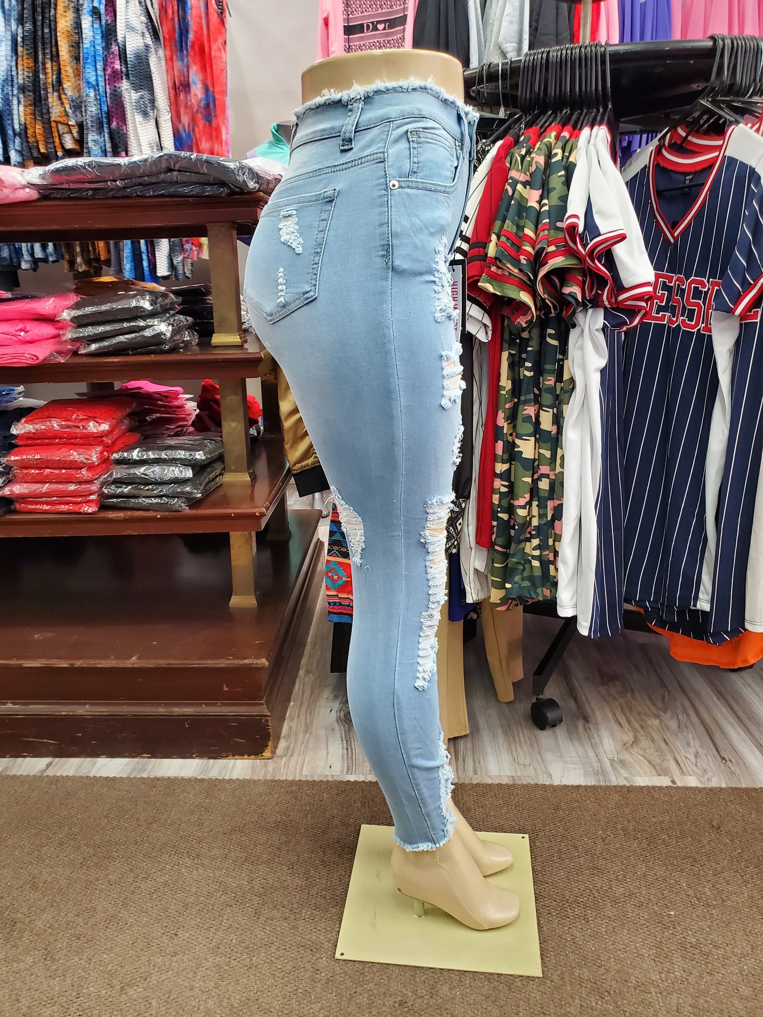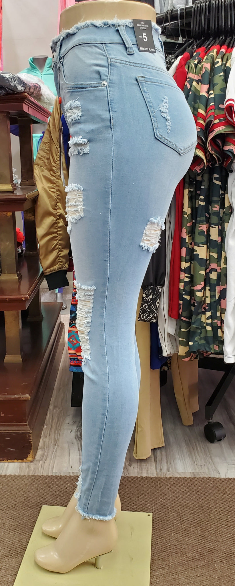 REDFOX HIGH WAISTED Rip Off Fringe Jeans (L. Blue) PA0434