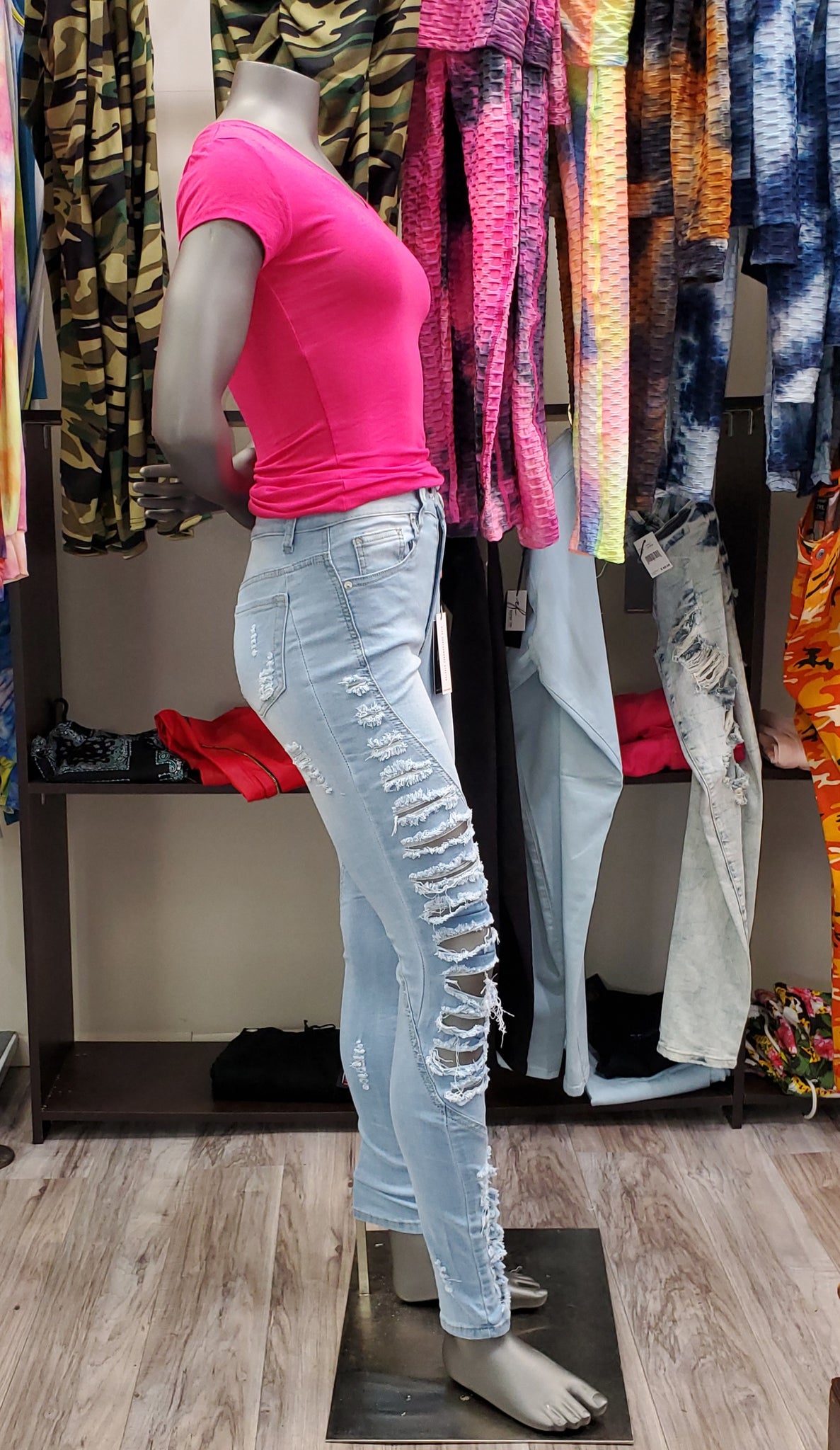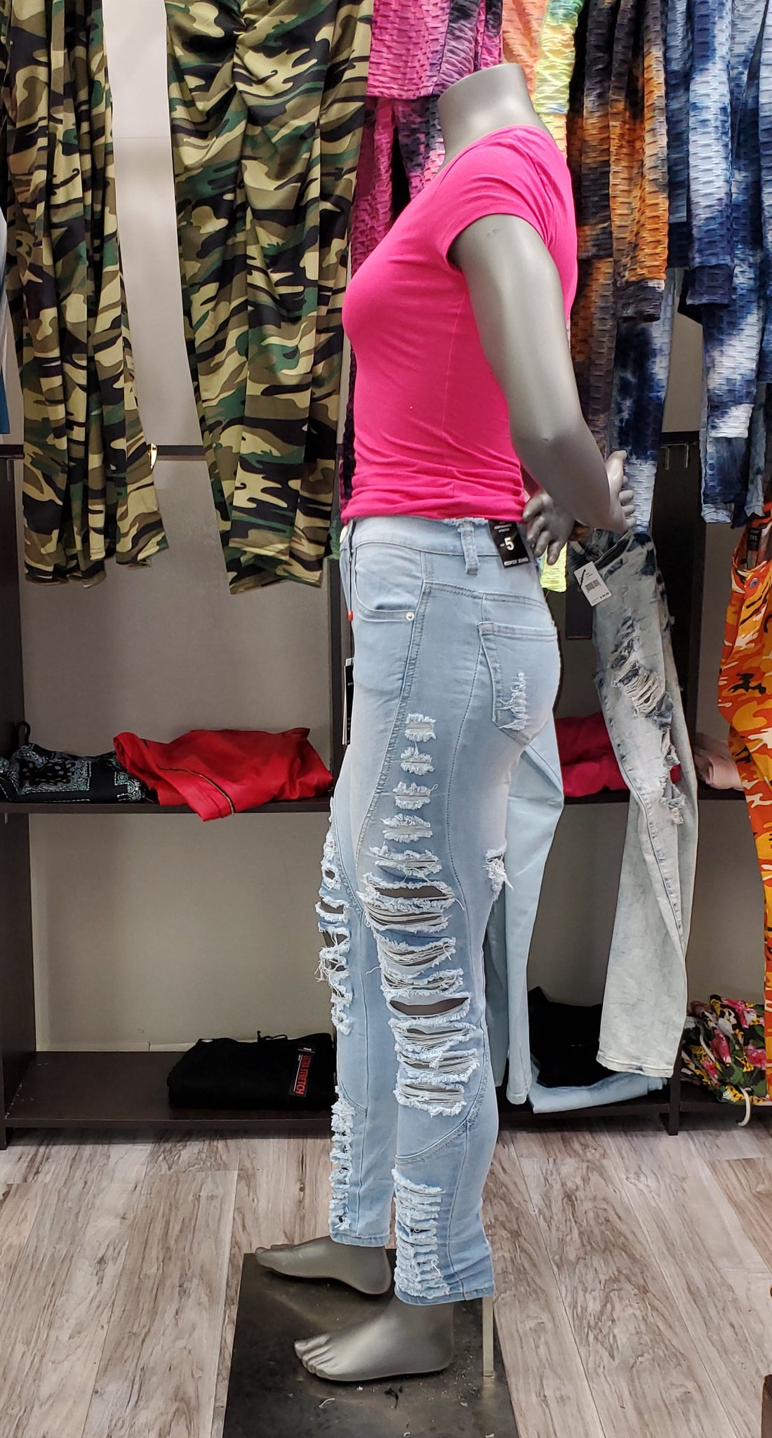 REDFOX HIGHWAIST ALL OVER RIP JEAN LT. BLUE (PA0476)