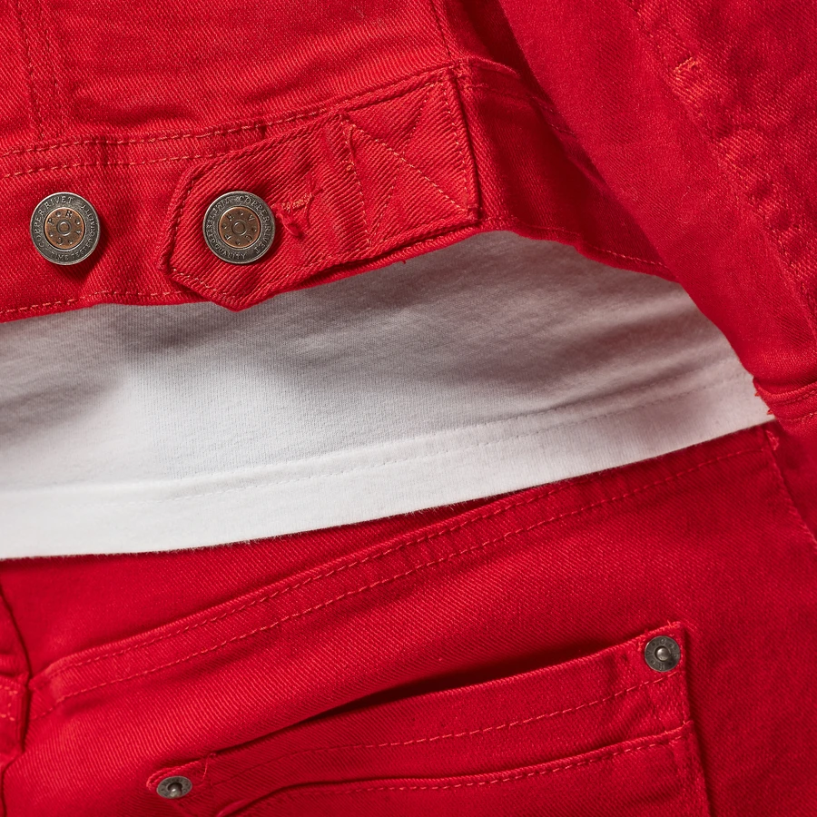 COPPER RIVET RED DENIM JEANS