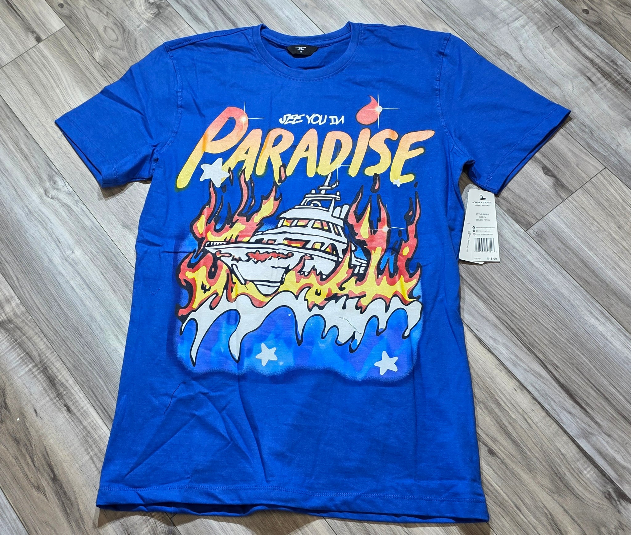 Embrace comfort and style with the Jordan Craig Burn the Boats T-Shirt in a striking royal hue. Designed with the modern man in mind, this regular fit tee is a versatile addition to any wardrobe. The large size ensures a relaxed fit for those who value both space and style. Crafted for durability and ease, this garment is a testament to the Jordan Craig brand's commitment to quality. Whether you're out for a casual meet-up or just lounging at home, this t-shirt promises to be a staple in your collection, complementing your everyday look with ease. (Please note: Joggers are sold separately.)