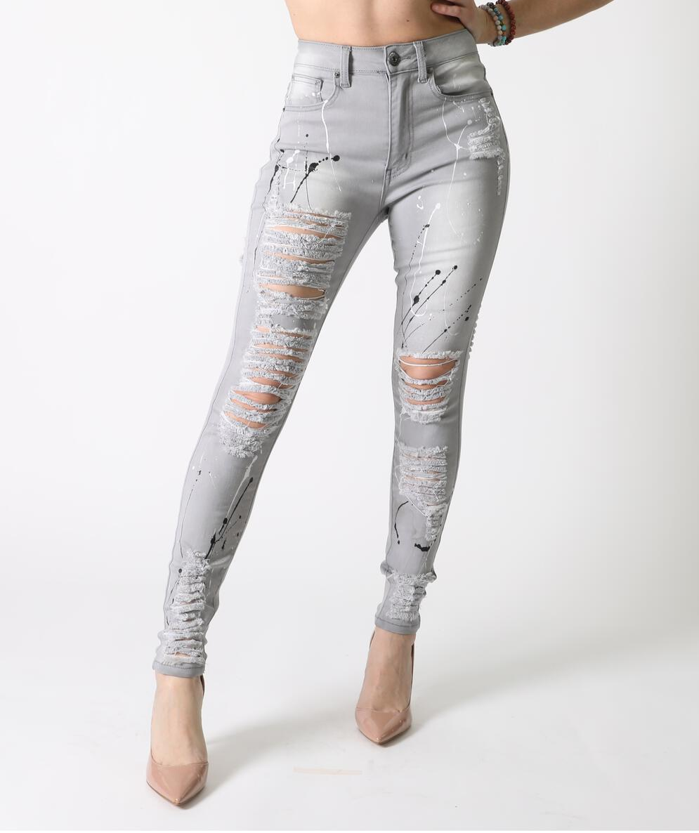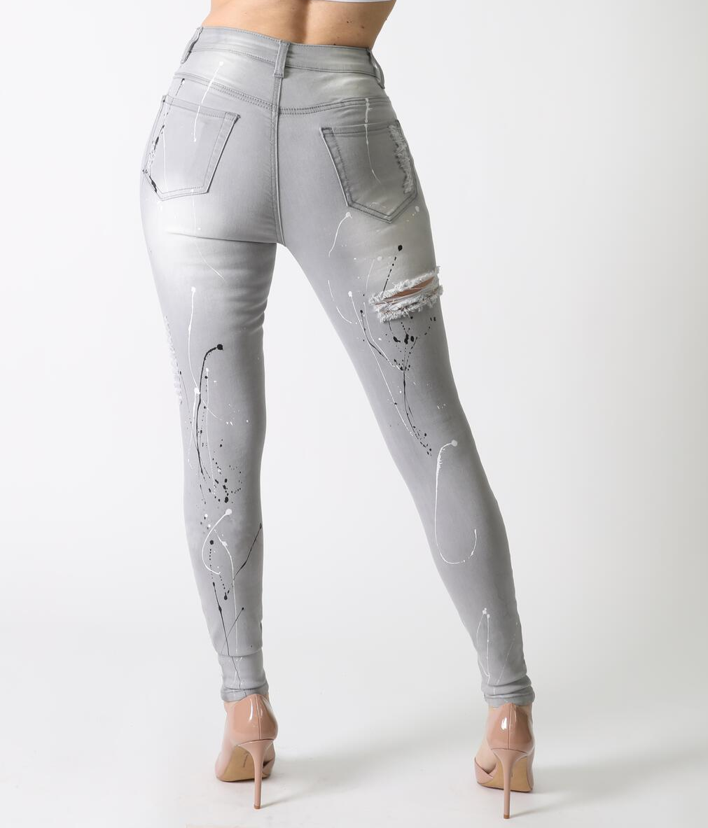 REDFOX HIGHWAIST SPLATTER DISTRESSED JEAN (LT. GREY) PA0563