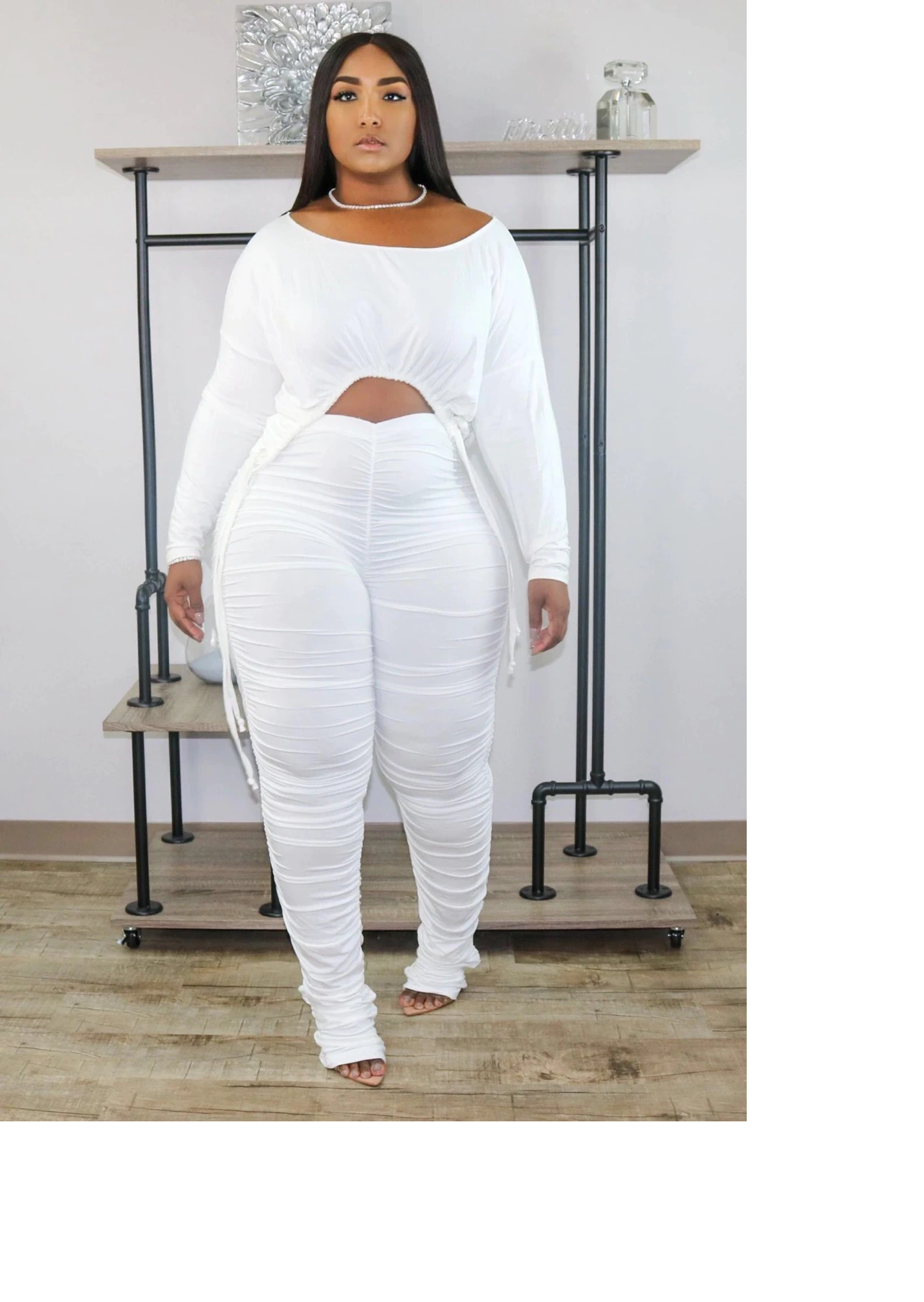 Women's Plus Size Crop Top and Stacked Leggings 2pc Set (White) IN STORES NOW !