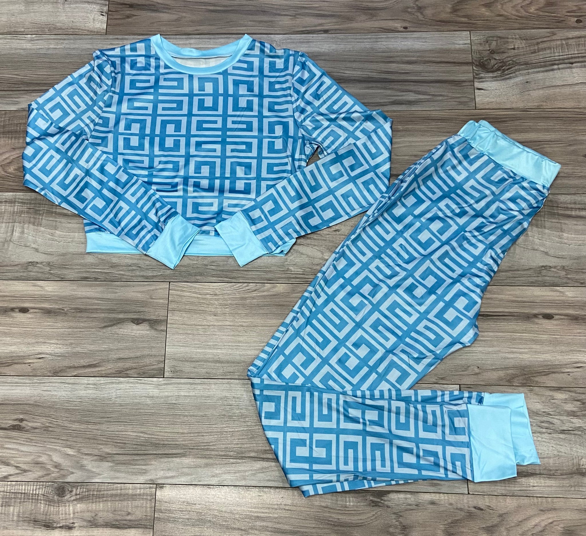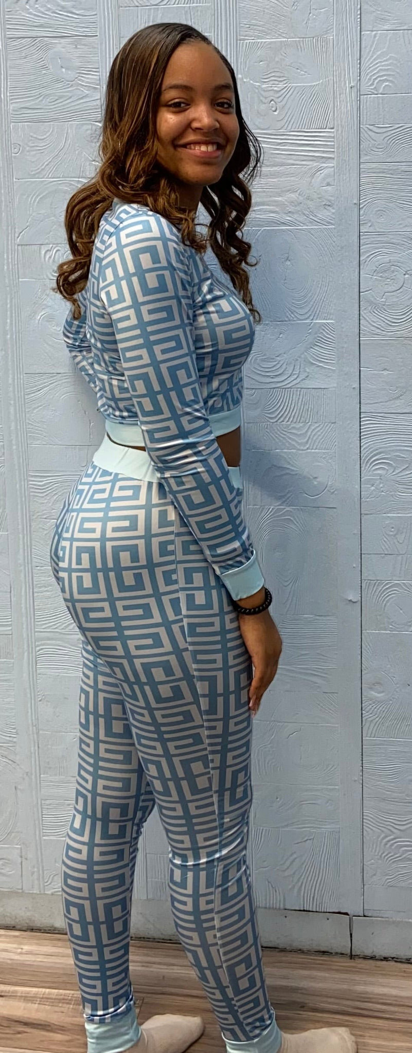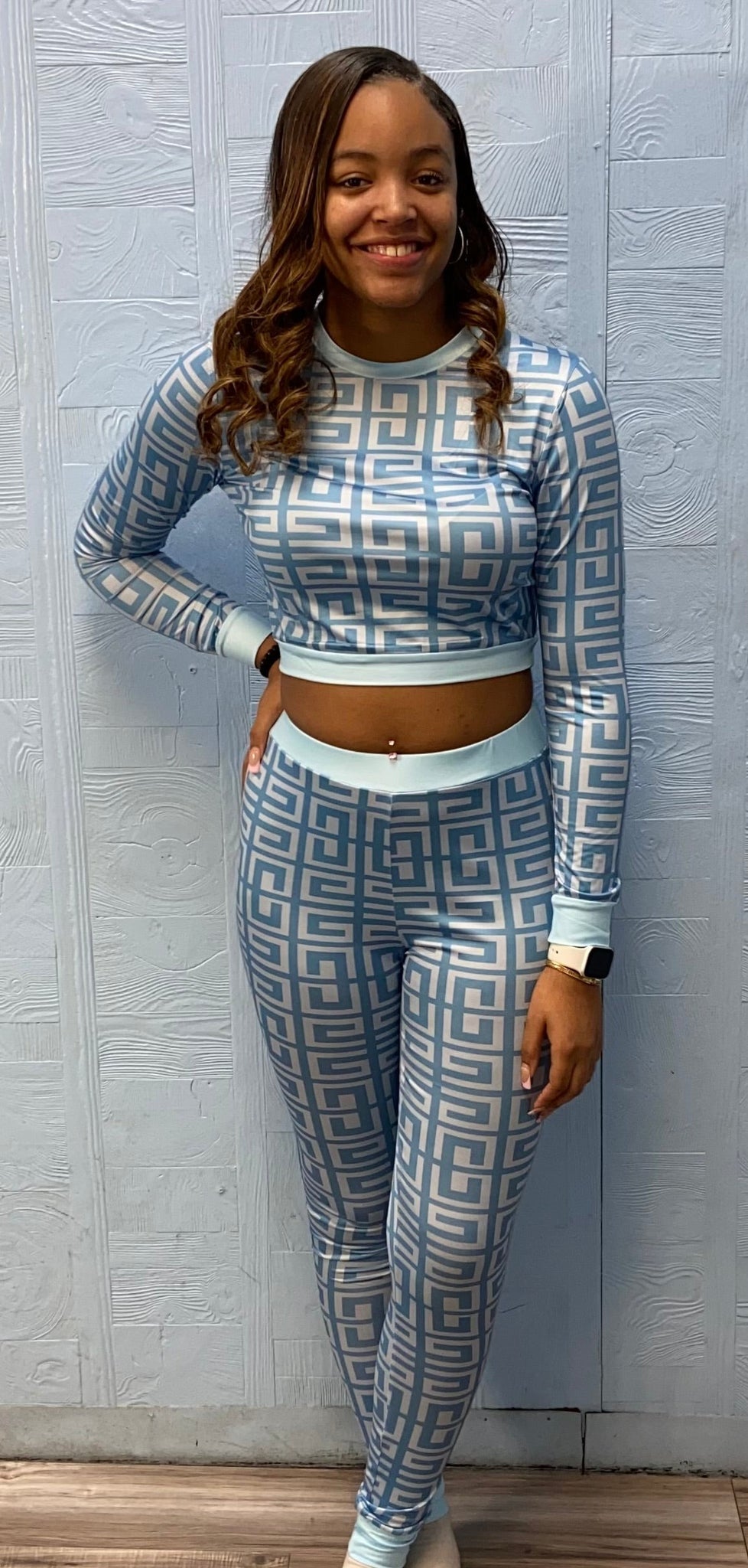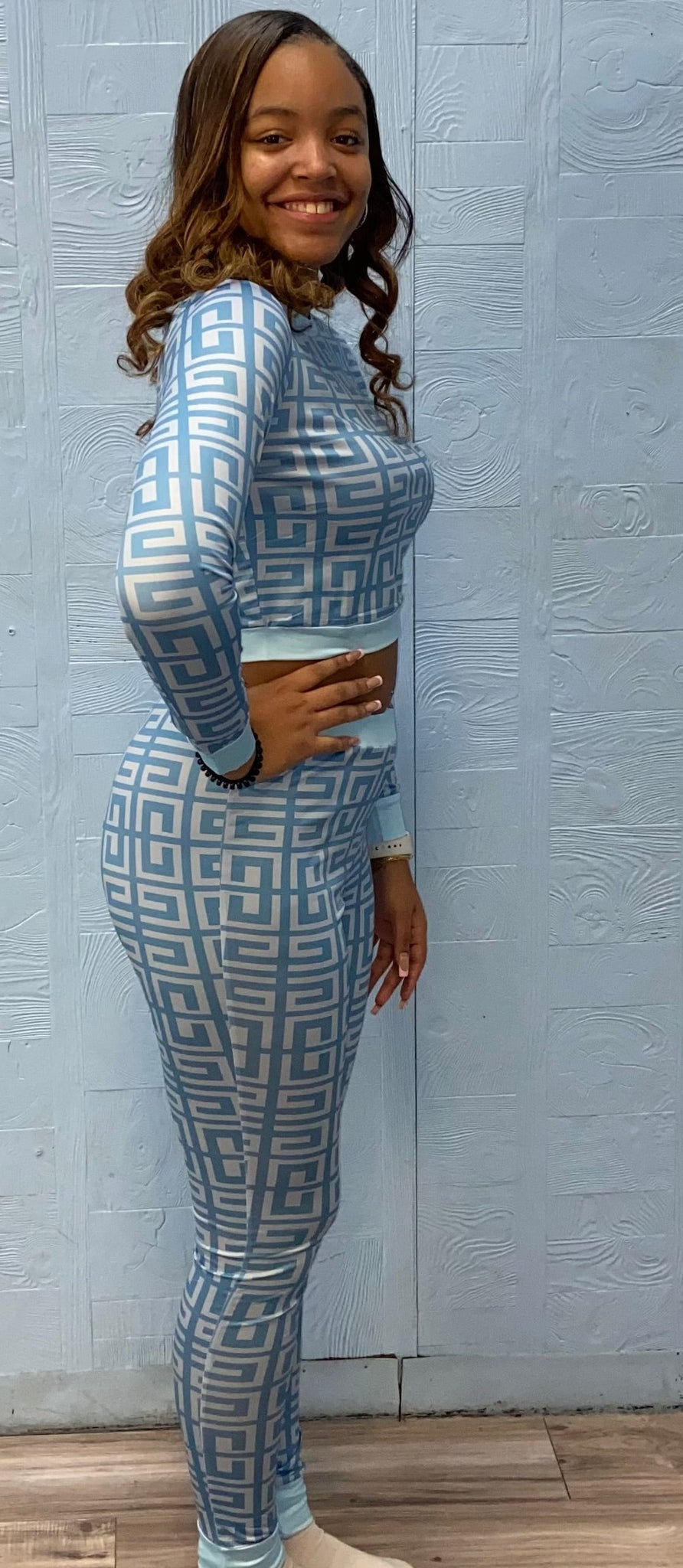 WOMEN'S VINTAGE PRINT CROP TOP & PANT SET (BLUE) IN STORES NOW!